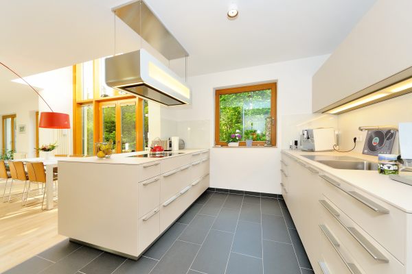 Zeile mit Insel, Dunstabzugshaube: berbel-Inselhaube