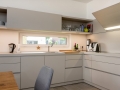Front: matt lackiert weiß. Arbeitsplatte: Silestone Gris Expo, grifflos