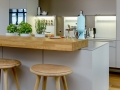 Grifflose bulthaup b3 , Front: Laminat weiß, Arbeitsplatte: Silestone Cemento, Barplatte: Eiche