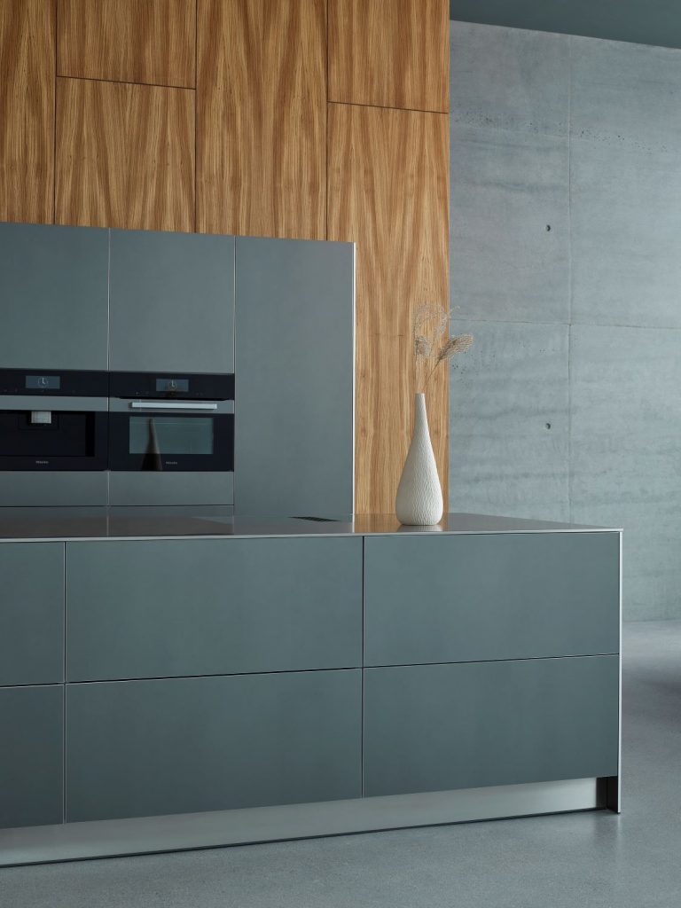 bulthaup b3 in kaolin und Aluminium grau, mit Solitär.